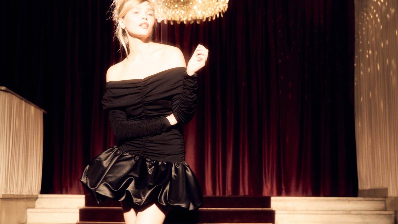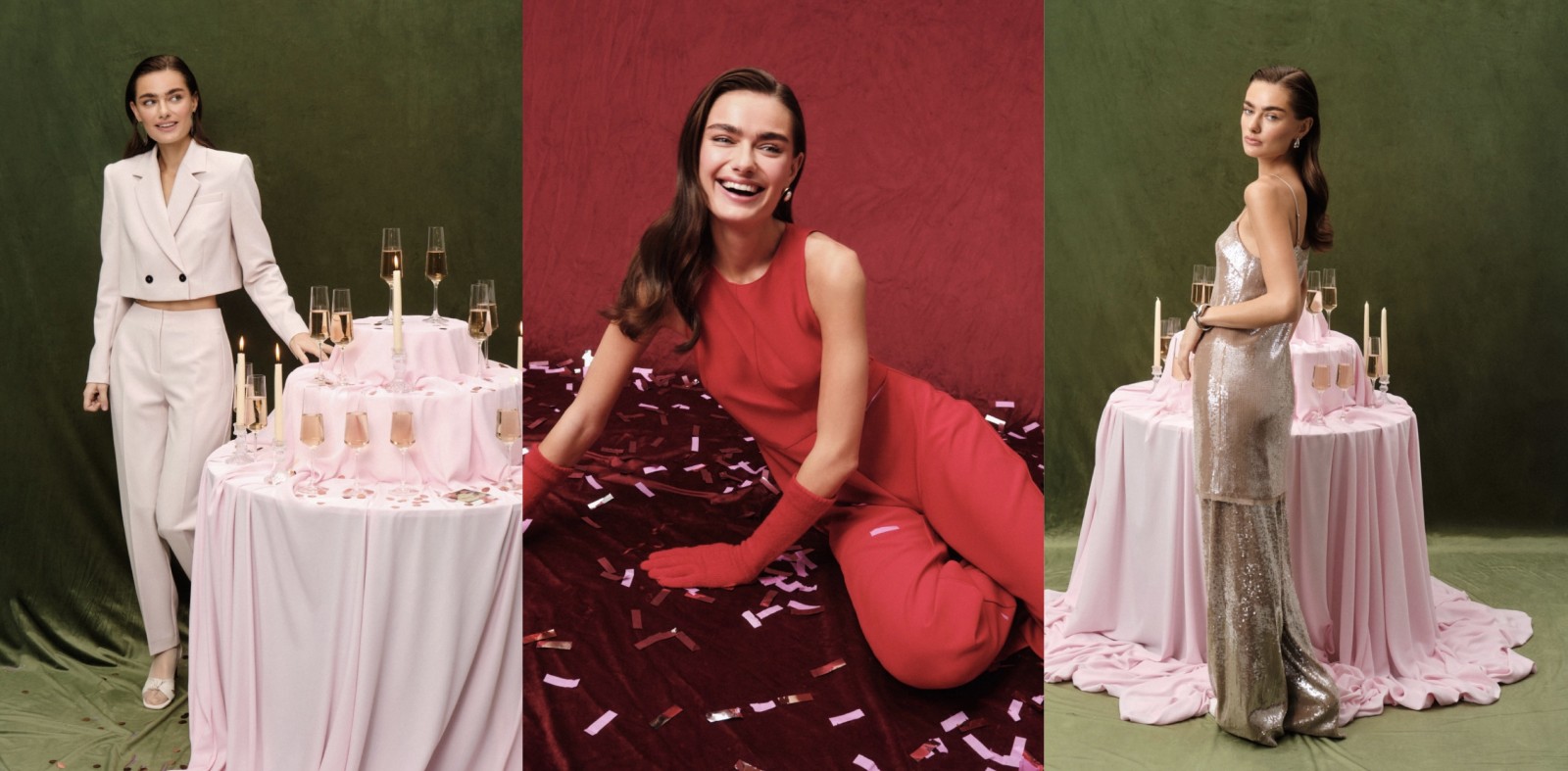 Коллекция создана для тех, кто любит блистать и выделяться. Пайетки, драпировки, открытые плечи и роскошные оттенки черного, красного, шампанского и розового — эти акценты добавят игривого настроения в любой праздничный образ.