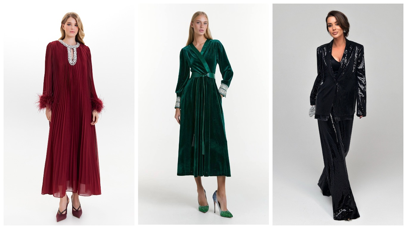 В числе весомых изделий — облегающее платье в длине макси для главной ночи в году, сияющие топы, брюки и платья, усыпанные пайетками для зажигательных танцев и эффектные комбинезоны для тех, кто ищет нестандартные решения.