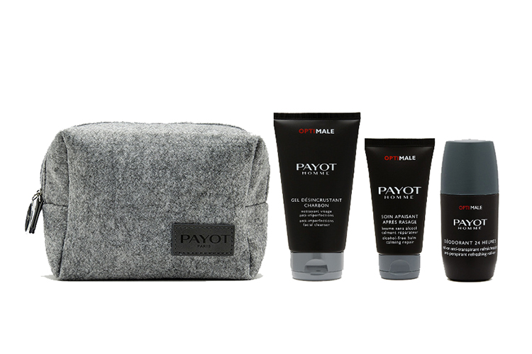Набор повседневных уходов для мужчин: успокаивающий бальзам после бритья, очищающее средство-скраб и дезодорант-ролик. Все средства – из серии Optimale.