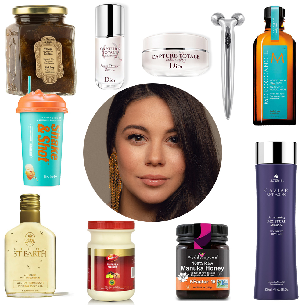 На фото: сыворотка для лица, от 6490 руб., укрепляющий крем для лица, 7790 руб., все — Capture Totale C.E.L.L Energy, Dior; массажер для лица, Transonic, около 1500 руб.; масло для волос, Moroccanoil, 3215 руб.; черное мыло c эвкалиптом для лица и тела, La sultan de Saba, 5600 руб.; альгинатная маска для лица Сияние & Детокс, Doctor Jart+, 990 руб.; моделирующий гель с экстрактом плюща, St. Barth, от 3790 руб.; аюрведческая био-добавка Triphala Churna, Dabur, около 1200 руб.; мед Manuka Honey, Wedderspoon, от 1950 руб.; шампунь с морским шелком, Caviar Anrti-Aging, Alterna, около 3700 руб.