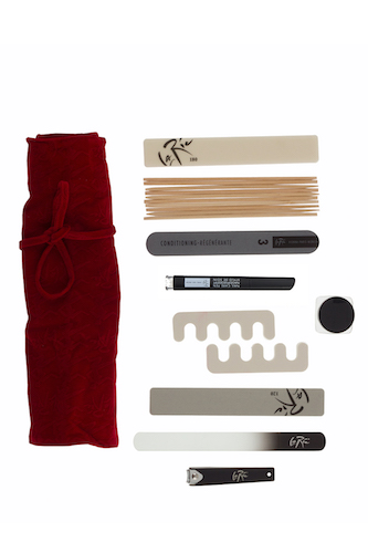 В элегантном пенале представлены: арома-пилинг, карандаш-уход для кутикулы, палочки из апельсинового дерева, щипцы для удаления заусенцев, пилка для стопы, стеклянная пилка для ногтей, пилка-губка, двухсторонняя полирующая пилка, разделитель для пальцев.