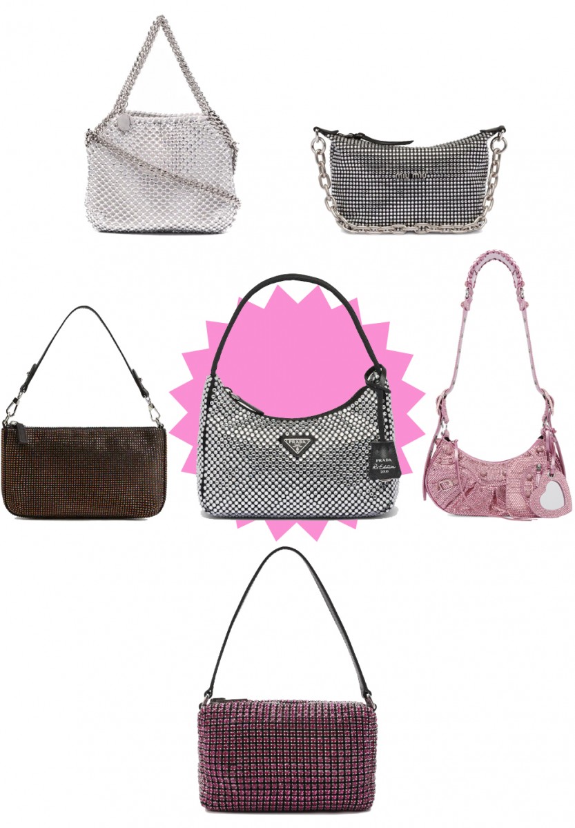 Сумка — одна из лучших фэшн-инвестиций. Если купить качественную модель, то она не только прослужит долго, но и поможет создать стильный образ. Конечно, лучше выбирать классику – черные сумки для осени и зимы, светлые – для весны и лета. Так точно не прогадаете. Но иногда так хочется быть в тренде! Особенно, когда видишь, как интересно смотрятся «новинки» в образах селебрити. И в этом году главным хитом стала сумка Prada, полностью покрытая кристаллами. Мы видели ее еще зимой у как у звезд (например, Бар Рафаэли, Эмили Ратаковски и других модных икон Голливуда), так и у российских инфлюенсеров. Причем эту, казалось бы, «праздничную» модель носили и с вечерними платьями на выход, и с джинсами и куртками в прогулочном аутфите. Интересно, что тренд перешел и в лето. Только теперь подобные сумки со стразами стали выпускать чуть ли не все бренды.
