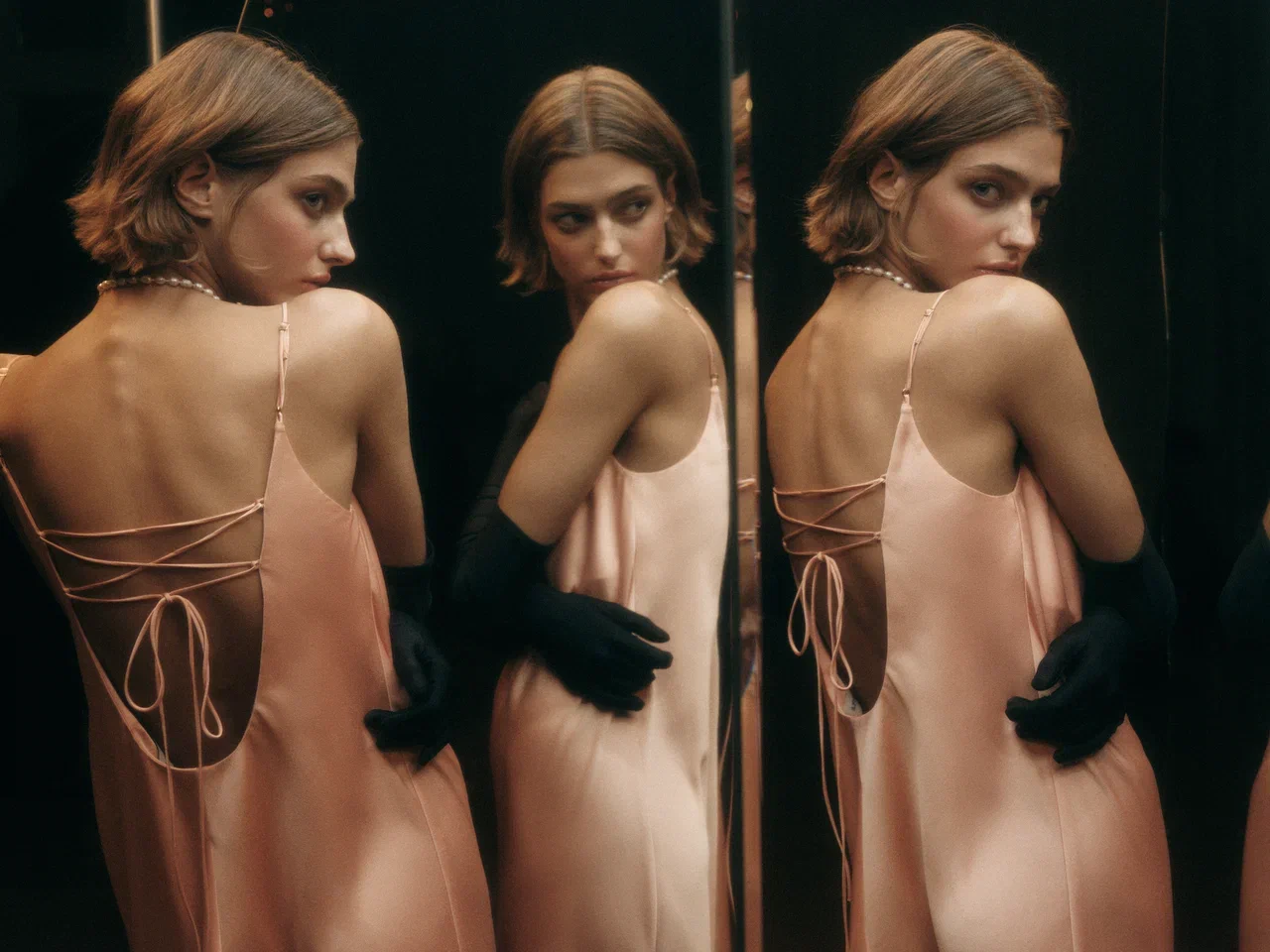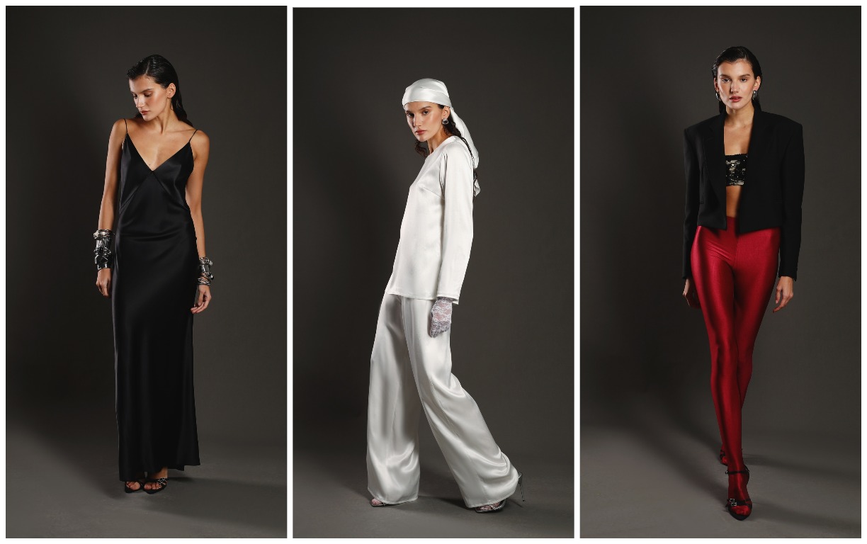 Новогодняя капсула Present & Simple имеет два ярко выраженных направления – богемный шелк и роскошный бархат. В шелковую часть коллекции вошли струящиеся пижамы, деликатные платья-комбинации с регулируемым фигурным лифом и корсетной шнуровкой на спине, а также шелковые платья средней длины с декоративными перекрутами на плечах. В этом сезоне в ассортимент Present & Simple вернулся абсолютный шелковый бестселлер прошлых сезонов — невесомая юбка Muse. Если шелковая часть коллекции дарит настроение расслабленного богемного аперитива, то бархатная часть идеальна для длинных и изысканных ужинов. Здесь нет компромиссов – бархатные платья глубокого черного оттенка представлены в макси и мини длинах, присутствуют короткие юбки-трапеции, корсетные топы из плотной ткани и укороченные жакеты с акцентными пуговицами.