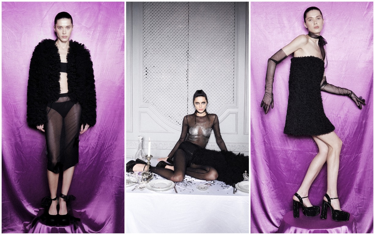 В основе концепции капсулы — понятие красоты, рассматриваемой через призму чувственности и сексуальности с тонким подходом к дизайну и изготовлению. В вечерней коллекции легко читается ДНК бренда в каждой детали. Знаковым изделием капсулы можно считать длинное молочное пальто. Также акцентными вещами в коллекции стали — шелковая юбка, бархатный корсет с глубокой зоной декольте и вечерние платья.