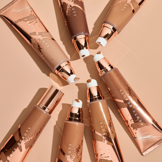 Это новика от Fenty Beauty, уже доступная в России. Гель-крем представлен в пяти оттенках, тонирует кожу и придает ей заметное сияние (в составе есть глиттер). Обещают устойчивость к влажности и поту – сейчас самое время протестировать.