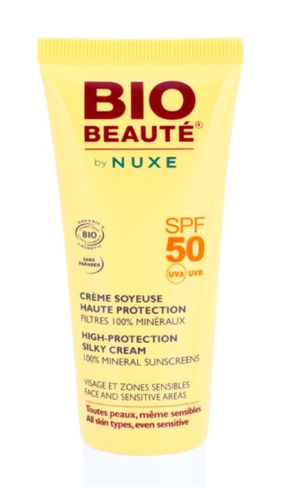 В солнцезащитной линии Bio Beauté by Nuxe используются 100% минеральные фильтры, разбавленные растительными маслами. Также за уход за кожей отвечает мякоть манго и масло ши, которые еще создают очень приятный летний аромат. Наш фаворит — защитный крем для лица и чувствительных участков кожи с SPF 50.
