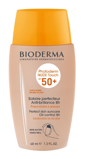 Photoderm Nude Touch SPF 50, Bioderma — матирующий флюид для жирной и комбинированной кожи. Его формула состоит из 100% минеральных фильтров, которые надежно защитят кожу от лучей UVA и UVB, а специальная технология Liquid-to-powder обеспечит ровный матовый цвет лица (причем оттенок сохранится до 8 часов). Идеально для эффекта «макияжа без макияжа».