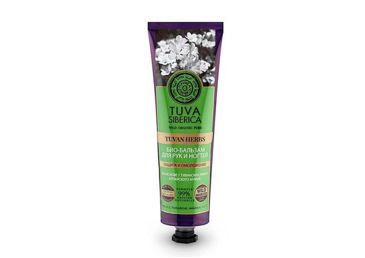Защитный бальзам изготовлен на основе семи тувинских трав и алтайского мумие, которые обеспечивают интенсивный уход и питание кожи рук, кутикулы и ногтей. Он предназначен для защиты от солнца, мороза и ветра, заживления трещинок, активного увлажнения. Бальзам на 99% состоит из экологических, натуральных компонентов. У него мягкая консистенция – впитывается без жирной пленки и мгновенно дарит ощущение мягкости и напитанности. А какой аромат! Нежный запах трав и полевых цветов вызывает приятные воспоминания о лете и поднимает настроение. При постоянном использовании бальзам укрепляет ногтевую пластину, предотвращает расслаивание, смягчает кутикулу.